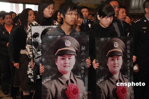 3月18日上午,鄭州市各界5000多人隆重悼別英雄女警王玉榮,為鄭州公安女英雄、全國公安一級英模、三級警監(jiān)、鄭州市公安局中原分局原副局長王玉榮送行。13年前王玉榮冒著生命危險(xiǎn)從身帶炸藥包歹徒手里解救出28名兒童和2名幼師人質(zhì)并機(jī)智將歹徒擊斃。后因積勞成疾與病魔頑強(qiáng)抗?fàn)?年后于2009年3月14日病逝,英年48歲。