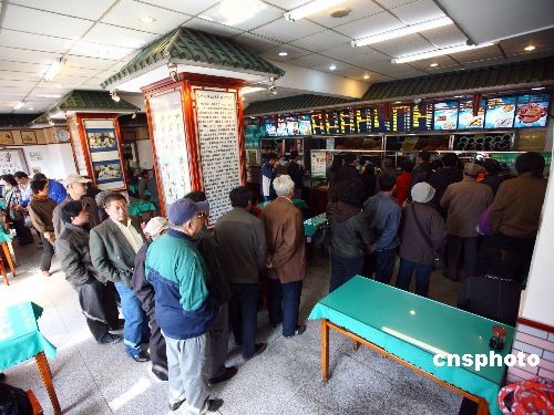 3月20日,迎來(lái)24節(jié)氣中的“春分”,意思是說(shuō)春天過(guò)了一半。按照老北京的習(xí)俗,“春分吃豆面糕(驢打滾),避邪祈!。北京著名護(hù)國(guó)寺小吃連鎖店為這天的到來(lái)準(zhǔn)備了1萬(wàn)多個(gè)驢打滾。圖為在護(hù)國(guó)寺小吃店了排隊(duì)買(mǎi)驢打滾的民眾。中新社發(fā) 富田 攝