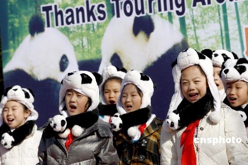 3月22日,在北京生活了9個(gè)月的8只奧運(yùn)大熊貓開始起程返回四川老家,北京動(dòng)物園特地舉辦了“奧運(yùn)熊貓返川儀式”,吸引萬(wàn)名觀眾前來依依惜別。中新社發(fā) 鄭雄增 攝