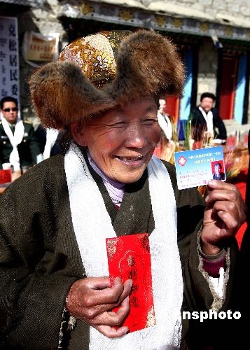 3月24日,在“西藏百萬(wàn)農(nóng)奴解放紀(jì)念日”即將來(lái)臨時(shí),作為西藏民主改革第一村的西藏山南地區(qū)乃東縣昌珠鎮(zhèn)克松村與西藏山南軍分區(qū)某部一起舉行“軍民共建小康示范村”揭牌儀式,此后,克松村民的基礎(chǔ)設(shè)施建設(shè)、教育、醫(yī)療等各方面都將得到解放軍更多的幫助。揭牌儀式上,15戶(hù)貧困村民得到了免費(fèi)醫(yī)療卡,300多人得到了醫(yī)療優(yōu)惠卡,生病的村民將在離村子僅5公里的解放軍41醫(yī)院得到最好的治療。中新社發(fā) 杜洋 攝