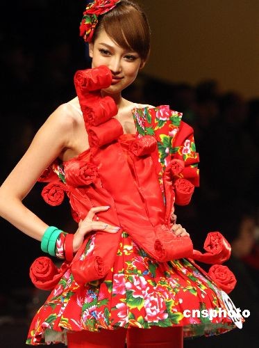 3月24日,中國(guó)國(guó)際時(shí)裝周(09/10秋冬系列)在北京隆重開幕,本屆時(shí)裝周將在D.PARK北京會(huì)所、北京飯店等主場(chǎng)地舉辦為期一周的專場(chǎng)發(fā)布、專項(xiàng)大賽、專題論壇等專業(yè)活動(dòng)近40項(xiàng),時(shí)裝周將期間將有來(lái)自國(guó)內(nèi)外的近20個(gè)知名品牌舉辦流行趨勢(shì)發(fā)布。圖為在開幕式上舉行“漢帛獎(jiǎng)”第17屆中國(guó)國(guó)際青年設(shè)計(jì)師時(shí)裝大賽作品展示。中新社發(fā) 錢興強(qiáng) 攝