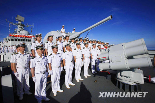 “廣州”艦全體官兵日前在巴基斯坦舉行的“和平-09”多國聯(lián)合軍事演習(xí)中出色完成了各項(xiàng)演習(xí)任務(wù),充分展示了中國海軍威武之師、文明之師、和平之師和勝利之師的良好形象,促進(jìn)了與參演各國海軍的交流與合作,增進(jìn)了中巴兩國、兩軍的互信與友誼。