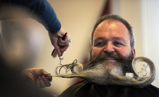 德男子將胡子編成自行車迎世界胡子節(jié)(3)