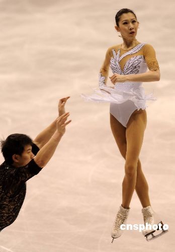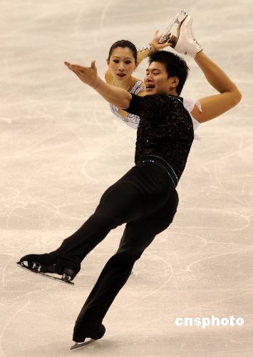 當?shù)貢r間3月24日晚,2009年花樣滑冰世界錦標賽在洛杉磯正式開幕。在當天晚上舉行的雙人滑短節(jié)目比賽中,中國選手、都靈冬奧會亞軍張丹和張昊以67.42名列第三。衛(wèi)冕冠軍德國組合薩維琴科和索爾科維名列第一。25日晚將舉行雙人自由滑比賽,根據(jù)兩項總成績決出名次。圖為張丹和張昊在比賽中。中新社發(fā) 張煒 攝