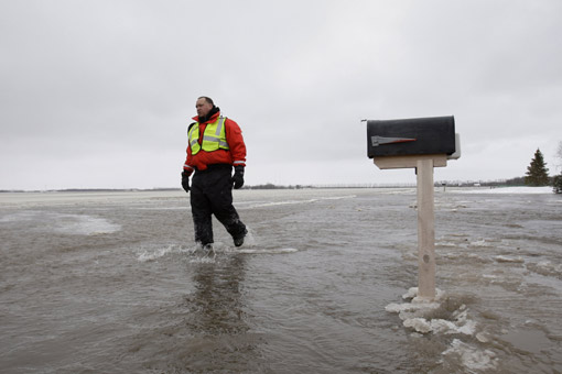 中新網(wǎng)3月26日電 美聯(lián)社消息,美國(guó)北達(dá)科他州近日春雪融化,造成河流水位猛漲,一些堤壩處于危險(xiǎn)之中。沿河公路及橋梁已經(jīng)全部關(guān)閉,春雪融化造成的冰凌還導(dǎo)致很多地方供電中斷。美國(guó)總統(tǒng)奧巴馬當(dāng)?shù)貢r(shí)間25日晚些時(shí)候命令當(dāng)?shù)厝娼鋫洌苊獬霈F(xiàn)人員傷亡。