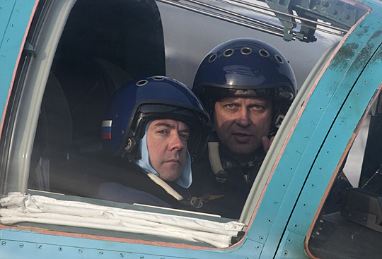 據(jù)俄媒體報(bào)道,梅德韋杰夫當(dāng)天在莫斯科郊外的“庫賓卡”空軍基地首先參觀了俄空軍新式裝備,包括S-三00和S-四00防空導(dǎo)彈系統(tǒng)。在經(jīng)過飛行前指導(dǎo)和醫(yī)學(xué)檢查后,俄羅斯總統(tǒng)身穿藍(lán)色飛行服,頭戴飛行頭盔,登上蘇—三十四戰(zhàn)斗轟炸機(jī),坐在主要負(fù)責(zé)領(lǐng)航和武器操縱的右座,飛向藍(lán)天。