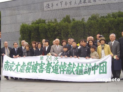 3月31日,來(lái)自日本的“南京大屠殺被害者追悼獻(xiàn)植訪中團(tuán)”一行30余人來(lái)到侵華日軍南京大屠殺遇難同胞紀(jì)念館,悼念南京大屠殺遇難者。這是日本日中友好協(xié)會(huì)自1986年以來(lái)組織的第24次“追悼獻(xiàn)植訪中團(tuán)”來(lái)南京悼念30萬(wàn)南京大屠殺遇難者,并種植樹苗,進(jìn)行“綠的賠罪”。
