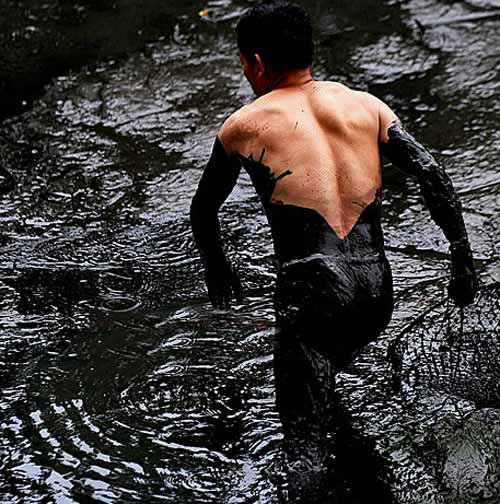 據(jù)華農(nóng)某施工隊(duì)的鄭師傅說,學(xué)校為了迎接校慶,計(jì)劃縮小池塘面積,并重新規(guī)劃周邊區(qū)域。約一周前就開始不分晝夜抽水,至昨日滿塘水被抽到塘底。昨日中午就開始有人下水捉魚,大頭魚、鯉魚、鯰魚……品種很多,每條最少五六斤,幾個(gè)小時(shí)內(nèi)已撈起近千斤魚。昨日下午3時(shí)許,曾有校衛(wèi)過來驅(qū)趕捕魚者。但校衛(wèi)一走,眾人又一窩蜂下水,之后再無人來干涉。