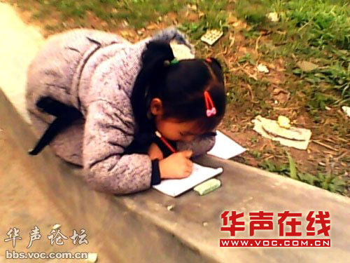 “我媽媽叫我在這里做作業(yè)”今天(9日),網(wǎng)友“奧馬巴”在論壇發(fā)了一組小女孩在工地寫作業(yè)的照片,照片中的女孩神態(tài)自若,稱爸爸媽媽就在工地上做事。小女孩的稚嫩的語言讓網(wǎng)友十分感動,喚她為“史上最美的農(nóng)民工女兒”。