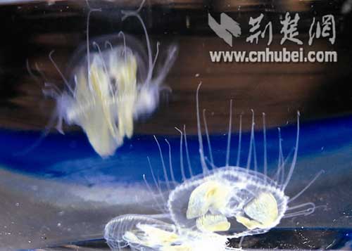 據(jù)介紹,當(dāng)日下午,丹江口市新港村村民陳文新,在漢江中發(fā)現(xiàn)一種硬幣大小、通體晶瑩透亮的生物伸縮漂游,總數(shù)約有4000只。經(jīng)該市水產(chǎn)局副局長、水產(chǎn)工程師熊治邦現(xiàn)場鑒定,它們是世界極危生物——桃花水母。