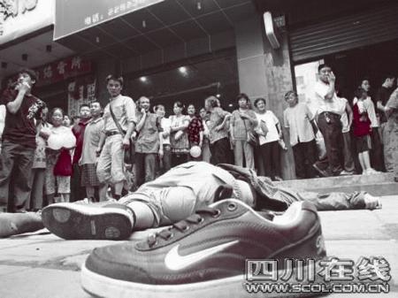 遂州中路是遂寧的繁華街道,現(xiàn)場很快聚集了很多圍觀市民。圍觀市民看見:躺在地上的死者很像一個高中生,年齡十八九歲,右手挽有一黑色雙肩背包!25日是高考成績公布的日子,這個人又像高中生,是不是他沒考好而跳樓自殺哦!薄鞍Γ“裆蠠o名,腳下有路,再怎么說也不應(yīng)該走這條路呀!”圍觀市民議論紛紛,“高考生跳樓”的消息不脛而走。