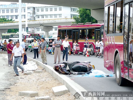 7月12日下午,一輛摩托車和一輛公交車同向行駛,途經(jīng)南寧市雙擁桃源路口時(shí)發(fā)生碰撞,摩托車手被撞身亡,事故造成附近路段塞車嚴(yán)重。