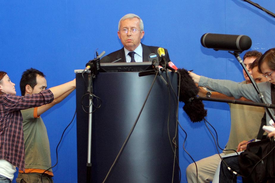 6月1日,法航一架載有228人的空客A330航班在大西洋上空失蹤。其中216名乘客,12名機組人員?蜋C上中國乘客的人數(shù)為9名。這架失蹤的客機是從巴西里約熱內盧飛往法國戴高樂機場的。圖為法航總經(jīng)理皮埃爾-亨利·古爾容在法國戴高樂機場舉行法航失蹤客機的新聞發(fā)布會。