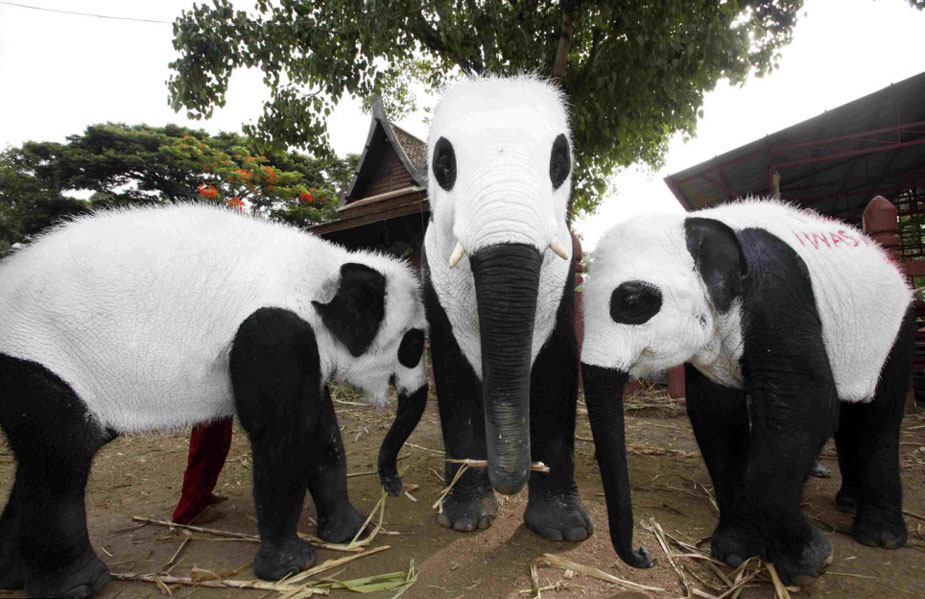 據(jù)英國(guó)媒體報(bào)道,近日,泰國(guó)因一只剛出生的熊貓陷入熱潮,泰國(guó)還準(zhǔn)備向公眾征集熊貓幼崽的名字。幾只大象也“妝扮”成熊貓的模樣,借此吸引人們的關(guān)注。
