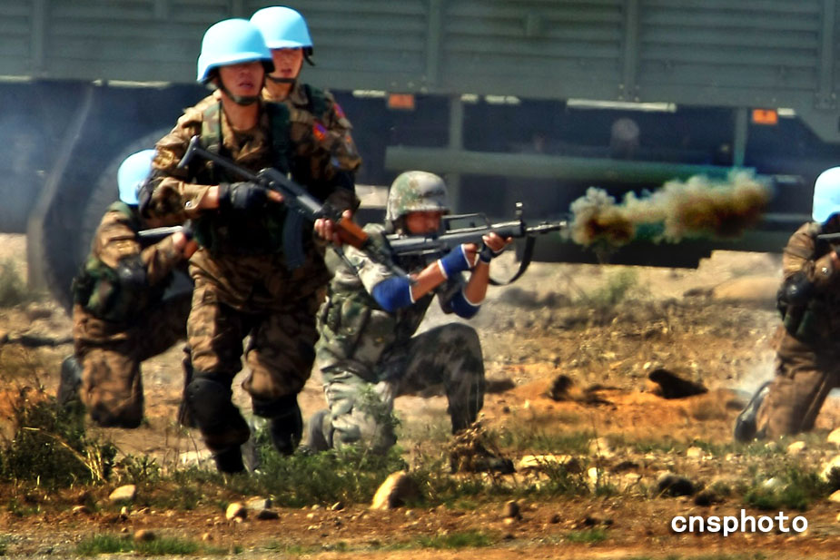 7月3日,中國和蒙古首次舉行維和聯(lián)合軍事訓練,以執(zhí)行聯(lián)合國框架下維和任務為背景,在北京地區(qū)某訓練場開展多種綜合演練。中新社發(fā) 宋吉河 攝