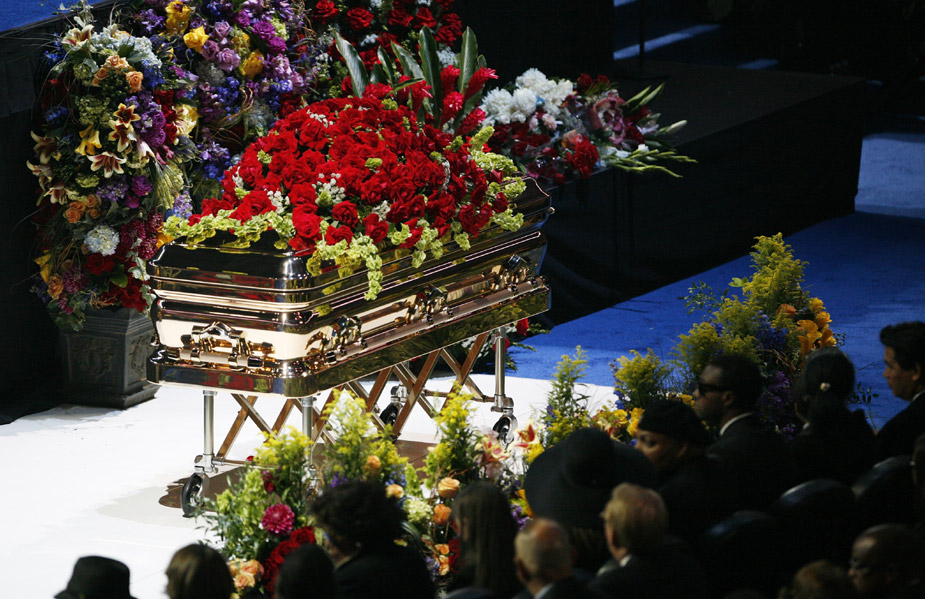 杰克遜遺體放置于追思會會場中央。