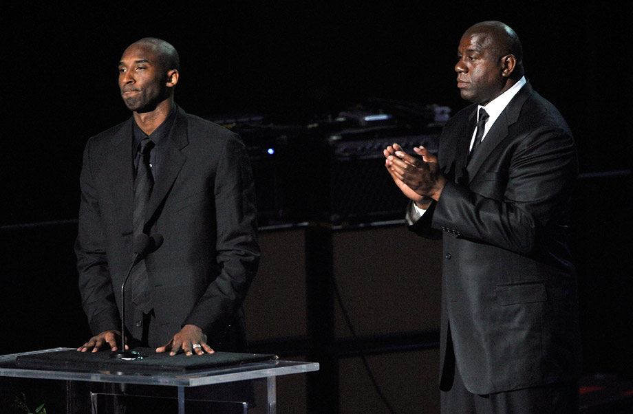 美國籃球明星科比和約翰遜在杰克遜的追思會上致辭,深情回憶了和杰克遜從相識到變?yōu)楹门笥训姆N種難忘經(jīng)歷和美好時(shí)光。