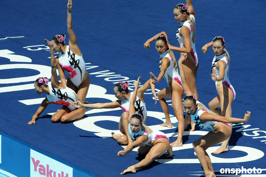 中國花游姑娘功夫動作亮相羅馬世錦賽。中新社發(fā) 廖攀 攝