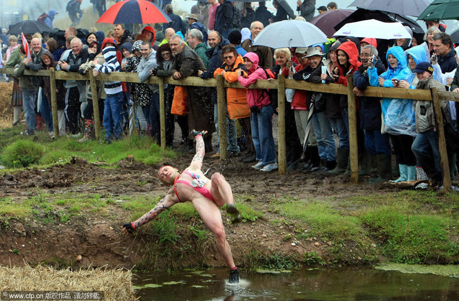 7月26日,硬漢挑戰(zhàn)賽在英國的伍爾弗漢普頓市舉行。這種以恐怖障礙著稱的比賽規(guī)則很簡單,勇士們通過規(guī)定的路程,誰先到達終點就是冠軍!參賽者需要在火焰中奔跑,穿越齊腰深的沼澤地,在帶刀片的鐵絲網下爬行,躍湖中,屏住呼吸穿越水下泥潭……