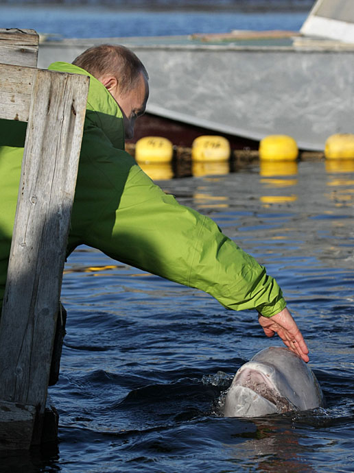 俄羅斯總理普京喂白鯨顯露柔情一面