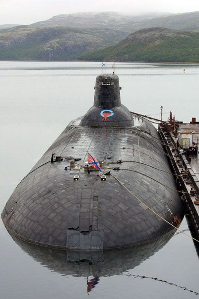這種水下武器平臺的技術數據是令人震驚的。它擁有鈦金屬制造的外殼,全長173米,寬24.6米,高42.7米,相當于一座10層大樓,水面航行時吃水深13米,水下排水量可以達到2.65萬噸,水面航速達到每小時30公里,潛航速度可以達到每小時50公里,最大下潛深度500米,持續(xù)潛航時間達到120天。在冷戰(zhàn)期間,六艘“臺風”級潛艇就位于距離挪威邊境50公里的Zapadnaya Litsa海軍基地。