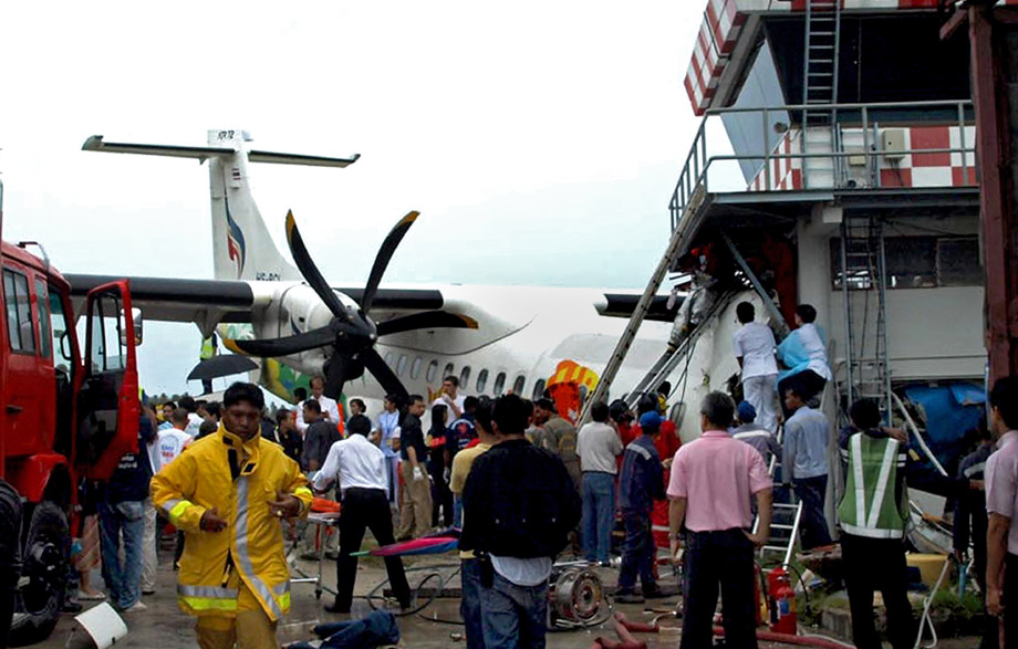8月4日,曼谷航空公司一架客機(jī)在泰國南部蘇梅島機(jī)場著陸時(shí)沖出跑道,并與一座航空控制塔相撞。飛機(jī)上載有68名乘客和4名機(jī)組人員。