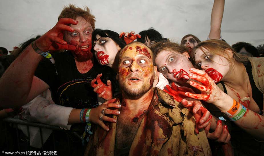 2009年8月6日,英國赫里福德郡Eastnor城堡,人們化裝成“僵尸”出現(xiàn)在大寒音樂節(jié)上,欲打破同一地點聚集最多“僵尸”的世界紀錄。
