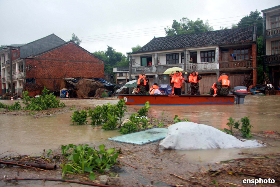 八月九日,武警官兵進入福鼎南墘村搶救受災(zāi)民眾。受臺風“莫拉克”強降雨的影響,福建寧德福鼎南墘村大面積受淹,大水同時也將通往該村的道路全部淹沒,致使該村猶如“孤島”,該村近三百名村民被困。中新社發(fā) 王東明 攝