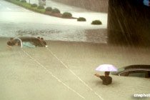 8月9日,莫斯科河畔舉辦一年一度的“墜落節(jié)”,表演者帶著自己設(shè)計(jì)制作的各種“飛行器”勇敢的從高空跳入水中。