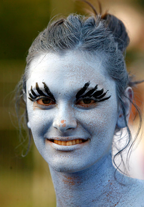 圖為參加狂歡節(jié)的人們在臉上進(jìn)行“涂鴉”。