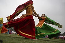 圖為印度民眾在雨中靜聽(tīng)印度總理辛格的講話。