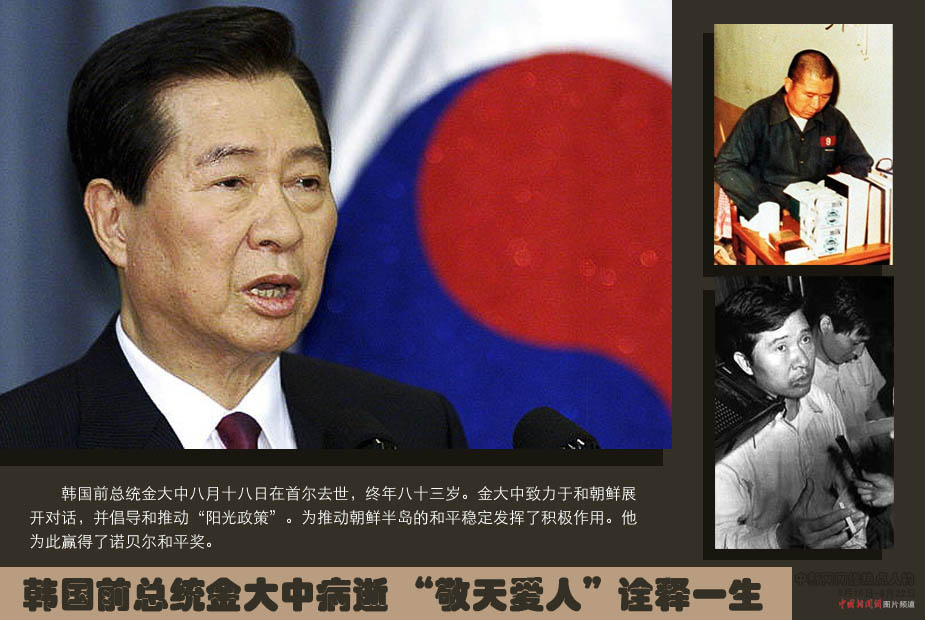 中新網(wǎng)本周熱點(diǎn)人物之——金大中 他經(jīng)歷了暗殺、綁架、監(jiān)禁、流亡等諸多磨難,幾乎嘗遍世間的辛酸苦辣,直接損害了他的健康。在朝鮮戰(zhàn)爭(zhēng)期間,他差點(diǎn)被處決。在一次針對(duì)他的綁架中,他險(xiǎn)些被淹死。在一次精心策劃的車禍中,他大難不死,但落下了終身殘疾,走路只能跛著腳。