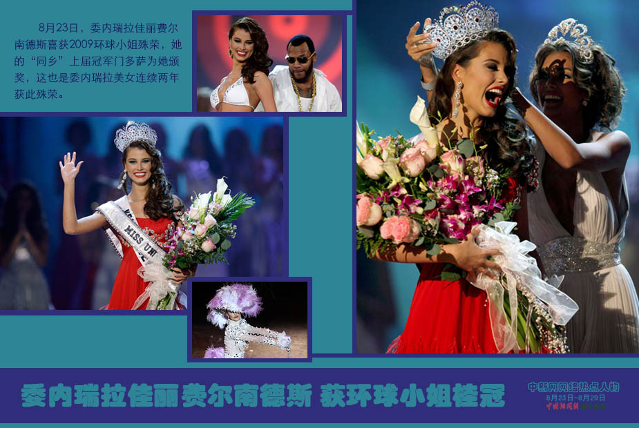中新網(wǎng)本周熱點人物之——費爾南德斯 8月23日,在巴哈馬拿騷舉行的2009環(huán)球小姐大賽中,委內(nèi)瑞拉小姐斯特凡尼婭·費爾南德斯奪得桂冠。