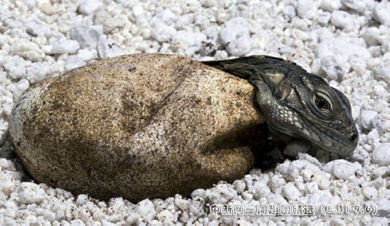 9月1日,美國圣迭戈動(dòng)物園兩只小藍(lán)鬣蜥破殼而出。藍(lán)鬣蜥是世界最瀕危的物種之一。圖片來源:中國新聞網(wǎng)