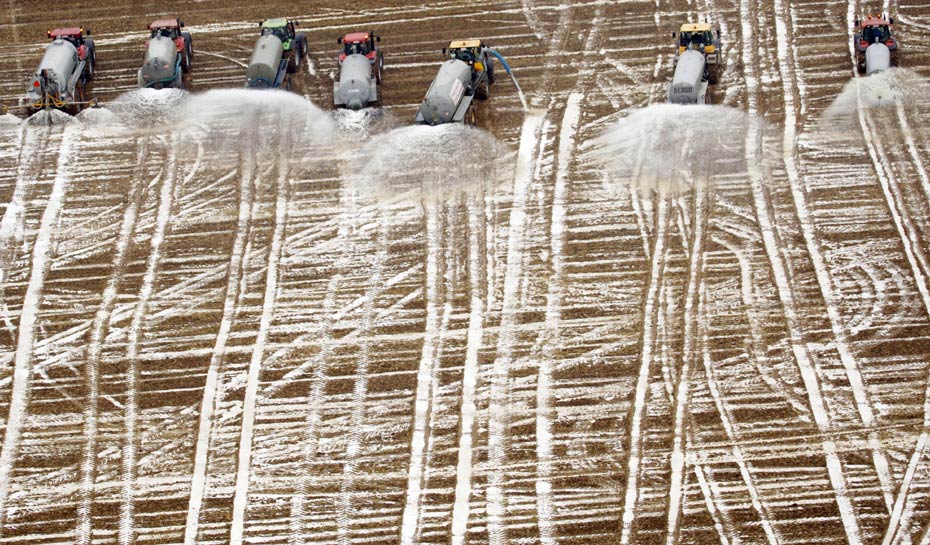 16日,比利時(shí)奶農(nóng)向地里傾倒了3百萬升鮮牛奶做“農(nóng)肥”,抗議奶價(jià)暴跌。奶農(nóng)們認(rèn)為,提高牛奶生產(chǎn)配額造成歐盟市場上奶制品供大于求,進(jìn)而引發(fā)價(jià)格暴跌。來源:中國新聞網(wǎng)