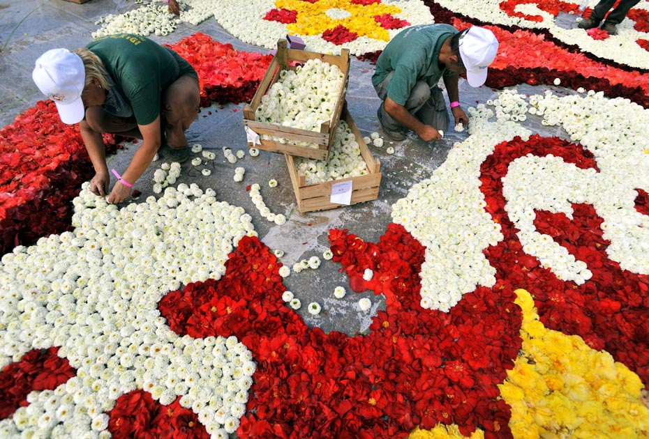 據(jù)悉,原本計(jì)劃全部使用以色列的鮮花,但由于當(dāng)?shù)氐孽r花產(chǎn)量不足,只能從布魯塞爾進(jìn)口,這批鮮花每朵花的直徑都在20厘米左右。百名志愿者們費(fèi)時(shí)7小時(shí)精心鋪成了這張花毯,這張鮮花地毯將展示三天,隨后將被生態(tài)埋葬。