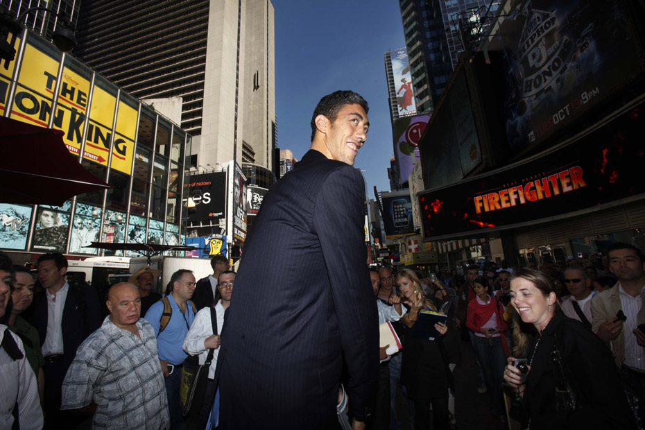 9月21日,身高2.465米的土耳其人柯森在美國紐約拿到了“世界第一高人”的吉尼斯世界紀錄證書。這項紀錄的上一位保持者是身高2.36米中國人鮑喜順。來源:中國新聞網(wǎng)