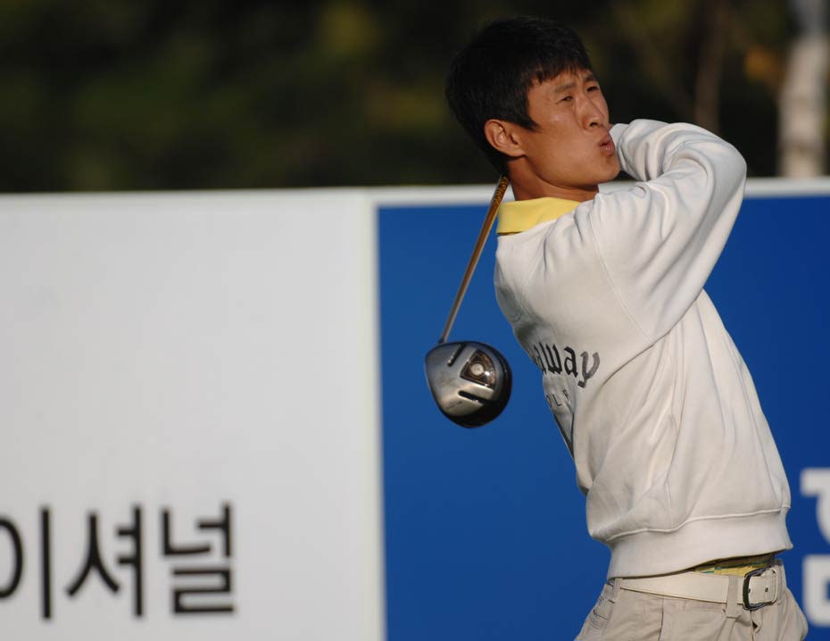 2009“韓國KEB銀行”中韓職業(yè)高爾夫球巡回賽韓國站于今天在韓國OSTAR高爾夫球俱樂部正式開桿,有47名球員代表中國參賽。圖為選手們上場第一天,揮桿開打的場面。