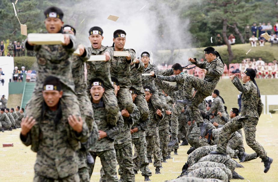 9月29日,韓國軍隊舉行建軍61周年慶典彩排活動。今年10月1日韓國將迎來建軍61周年。