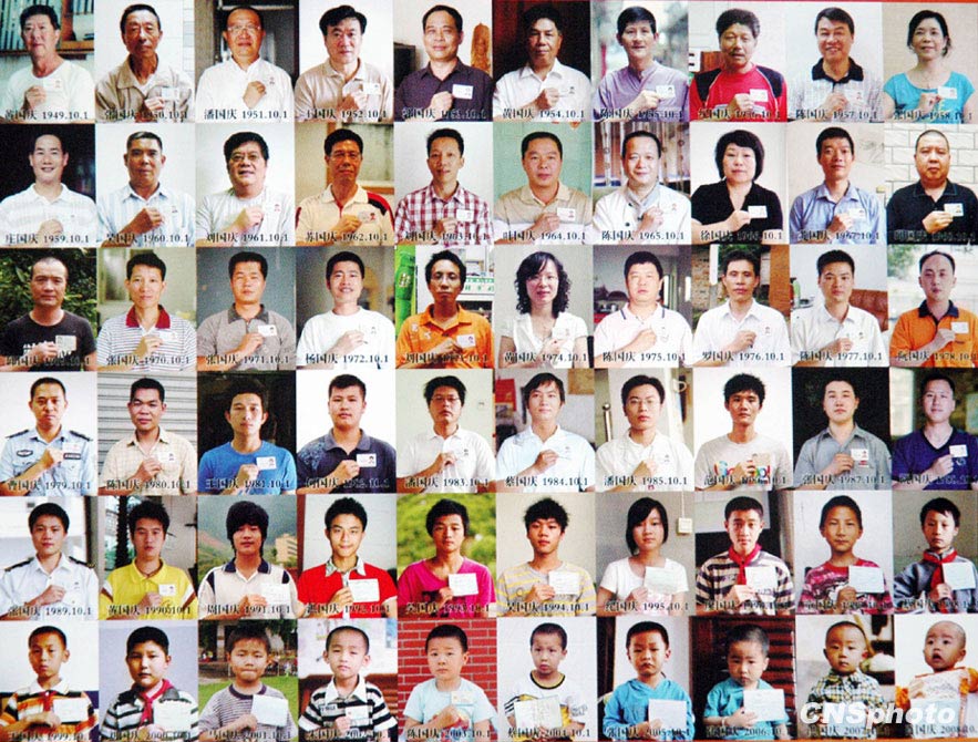 9月27日,“見證祖國60歲 我的名字叫國慶”攝影個展在福州舉行。為了紀(jì)念中華人民共和國成立60周年,福建職業(yè)攝影師阮曉榕歷時四個多月,歷經(jīng)8000余公里行程,尋訪了近百人,最終成功拍攝了從1949年到2008年10月1日出生、名字叫“國慶”的60個人。 中新社發(fā) 張 斌 攝