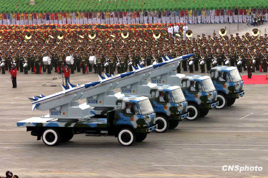 圖為1999年國慶閱兵式上海軍導彈方隊從天安門前走過。 中新社發(fā) 李剛 攝