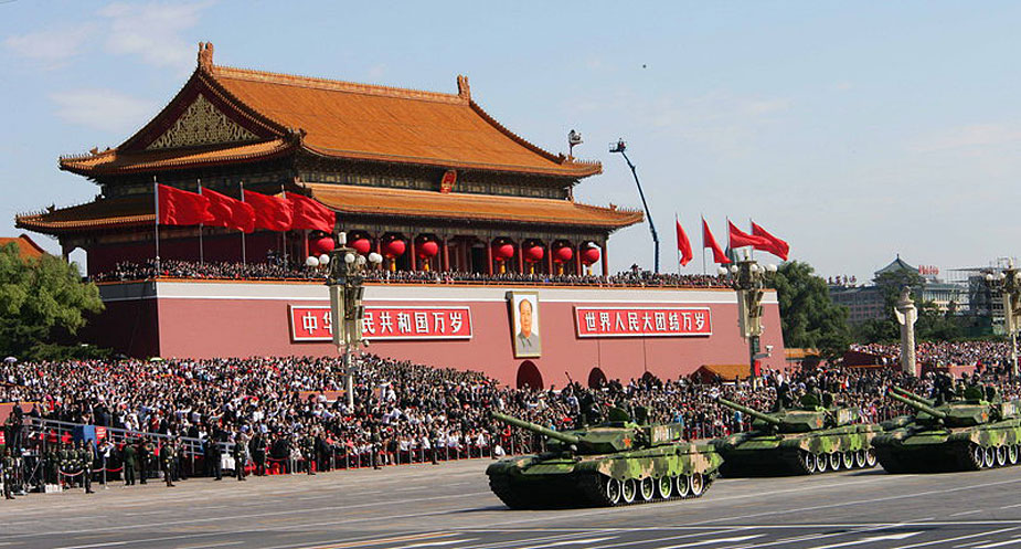 2009年10月1日,首都各界慶祝中華人民共和國(guó)成立60周年大會(huì)在北京天安門廣場(chǎng)隆重舉行。這是坦克第一方隊(duì)正在通過(guò)天安門廣場(chǎng)。