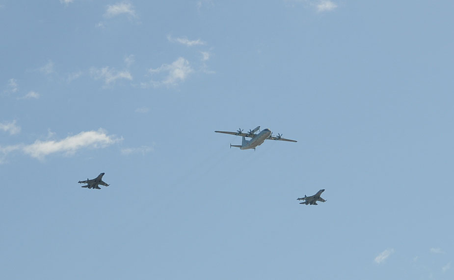 2009年10月1日,中華人民共和國(guó)成立60周年慶祝大會(huì)在北京天安門廣場(chǎng)舉行。圖為預(yù)警機(jī)梯隊(duì)通過天安門廣場(chǎng)上空。中新網(wǎng)記者 攝