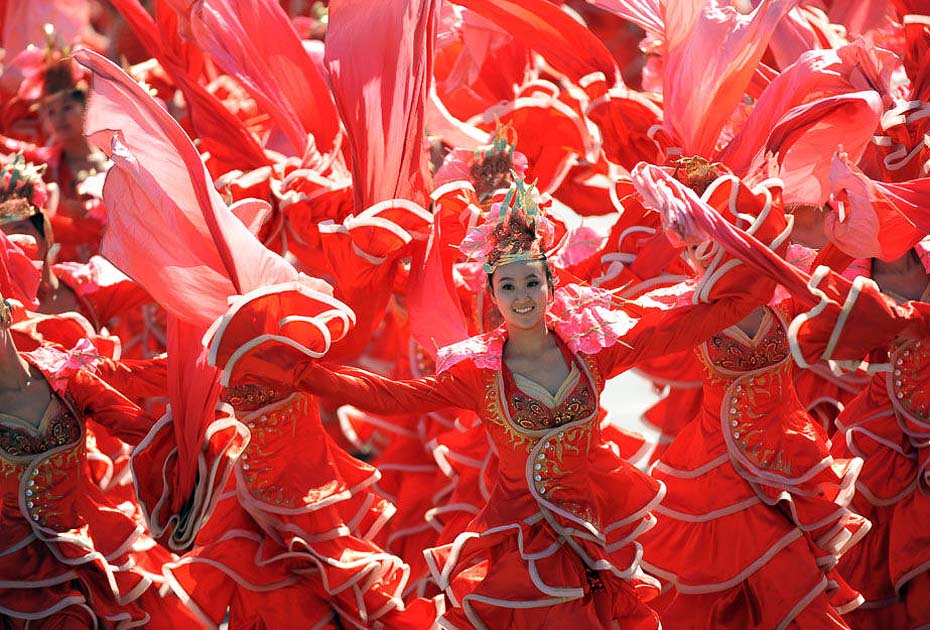 圖為大型水袖舞“祝福祖國”。李尕 攝 圖片來源:新華網(wǎng)