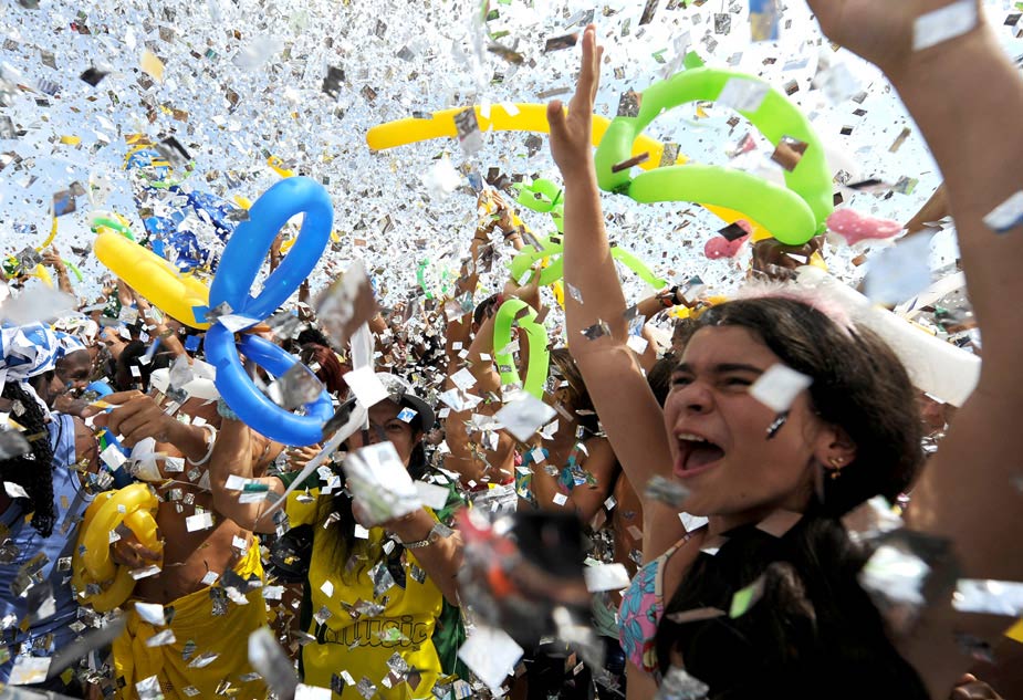 北京時間10月3日凌晨結(jié)束的2016年夏季奧運(yùn)會舉辦城市投票中,巴西里約熱內(nèi)盧經(jīng)過三輪投票,擊敗馬德里、東京和芝加哥,成功獲得了2016年奧運(yùn)會的主辦權(quán)。這將是現(xiàn)代奧林匹克運(yùn)動自1894年首次在希臘舉辦之后,在一百多年的時間里首次來到南美洲大陸。圖為巴西民眾得知里約熱內(nèi)盧獲得2016年奧運(yùn)會主辦權(quán)后,在海灘上瘋狂歡慶。
