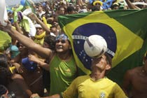 北京時間10月3日凌晨結束的2016年夏季奧運會舉辦城市投票中,巴西里約熱內盧經過三輪投票,擊敗馬德里、東京和芝加哥,成功獲得了2016年奧運會的主辦權。這將是現(xiàn)代奧林匹克運動自1894年首次在希臘舉辦之后,在一百多年的時間里首次來到南美洲大陸。圖為巴西民眾得知里約熱內盧獲得2016年奧運會主辦權后,在海灘上瘋狂歡慶。