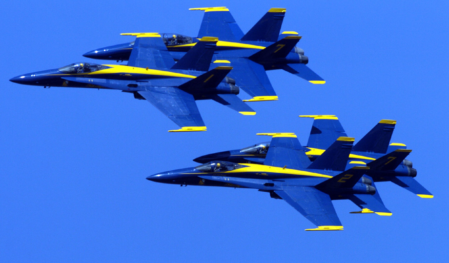 2009年10月8日,美軍飛機在舊金山灣上空進行飛行演練。一年一度的舊金山艦隊周將于10月10日開幕,屆時會有船艦游行和飛行表演等活動。 來源:中國新聞網