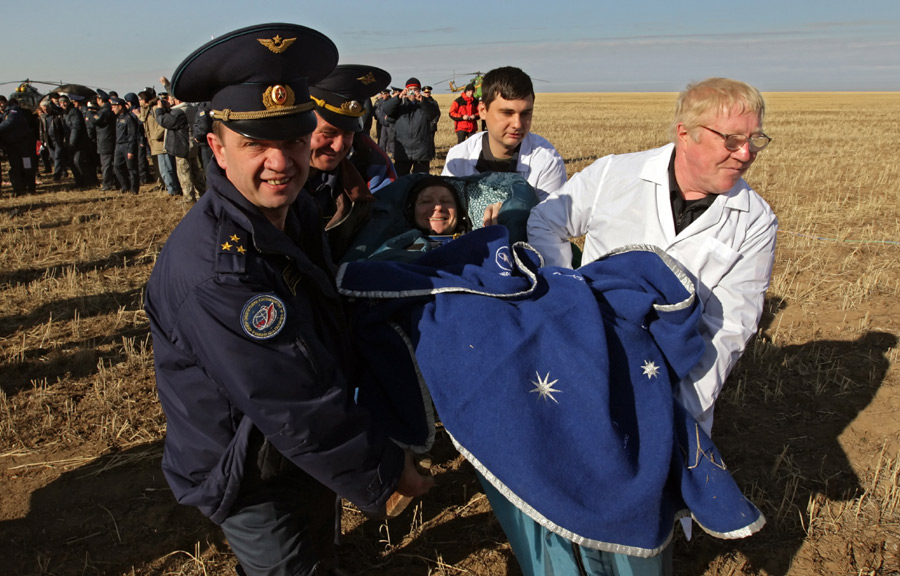 10月11日,俄羅斯“聯(lián)盟TMA-14”載人飛船攜加拿大太空游客蓋·拉利伯特及兩名宇航員一起返回地球,成功在哈薩克斯坦著陸。來源:中國新聞網(wǎng)