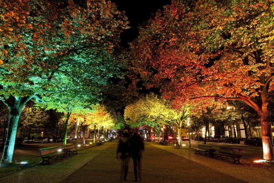 10月14日德國柏林將迎來一年一度的“燈節(jié)”。13日晚在德國首都柏林,著名的林蔭大道“菩提樹下大街”在“燈節(jié)”預(yù)演中被五彩燈飾照亮。