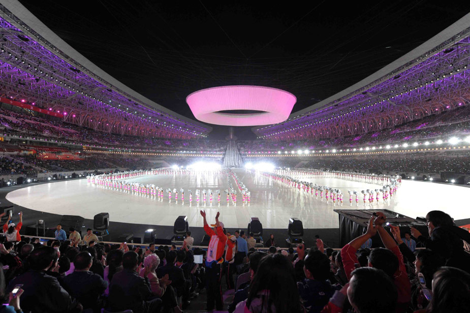 十月十六日晚,中華人民共和國第十一屆運動會在山東濟南奧體中心隆重開幕。中新社發(fā) 陳文 攝